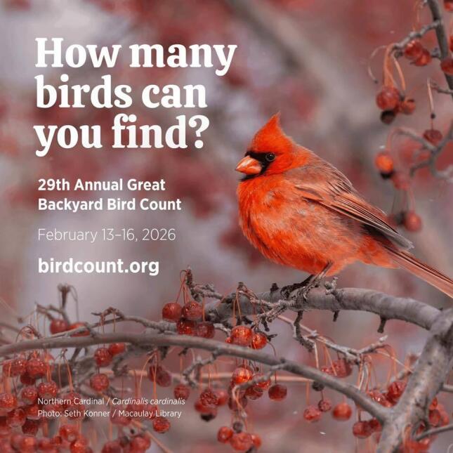 Take Part in the Great Backyard Bird Count GOING ON NOW: February 13-16, 2026